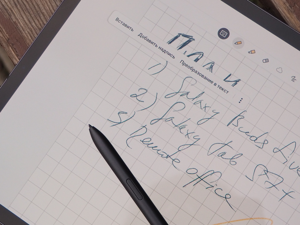 Не будем подробно рассказывать о возможностях пера S Pen — они такие же, как у перьев от серии Samsung Galaxy Note20, да и приложение Samsung Notes для заметок здесь такое же. Письмо, рисование, распознавание распознавание рукописного текста и конвертация в файлы Word, аннотирование PDF — все то же самое, что и в смартфонах Galaxy Note.