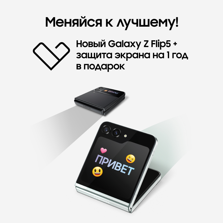 Оформите покупку Galaxy Z Flip5 в магазине и получите сертификат Samsung Care+ в подарок.