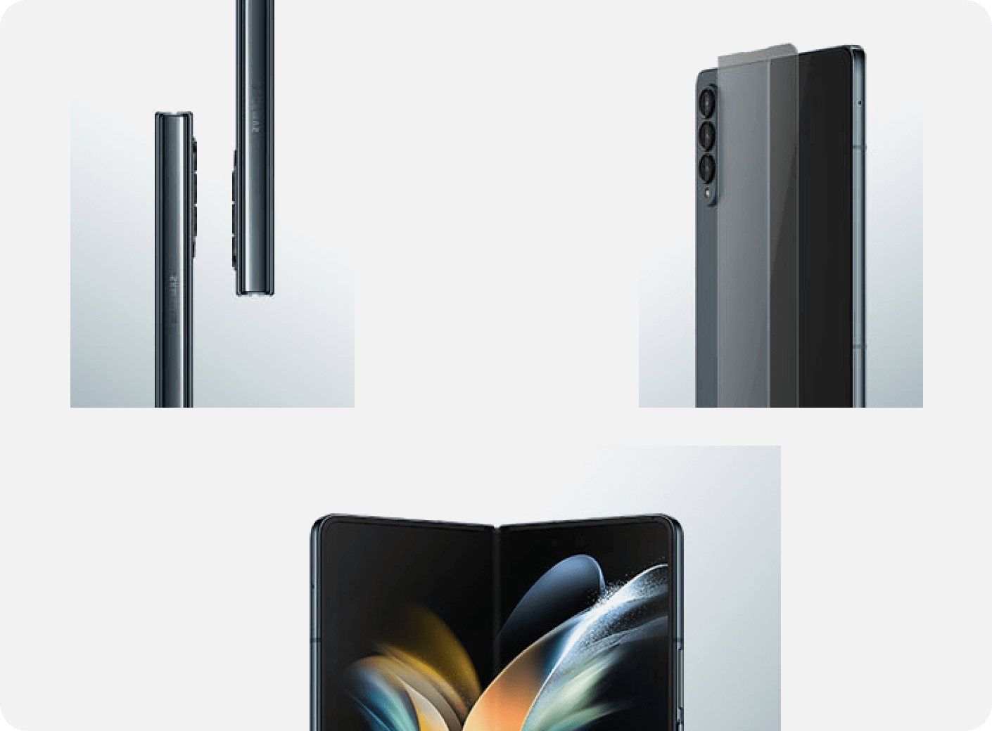7. Измеренный по диагонали размер основного экрана Galaxy Z Fold4 составляет 7,6 дюймов в полном прямоугольнике и 7,4 дюйма с учетом закругленных углов; фактическая видимая область меньше из-за закругленных углов и отверстия камеры.