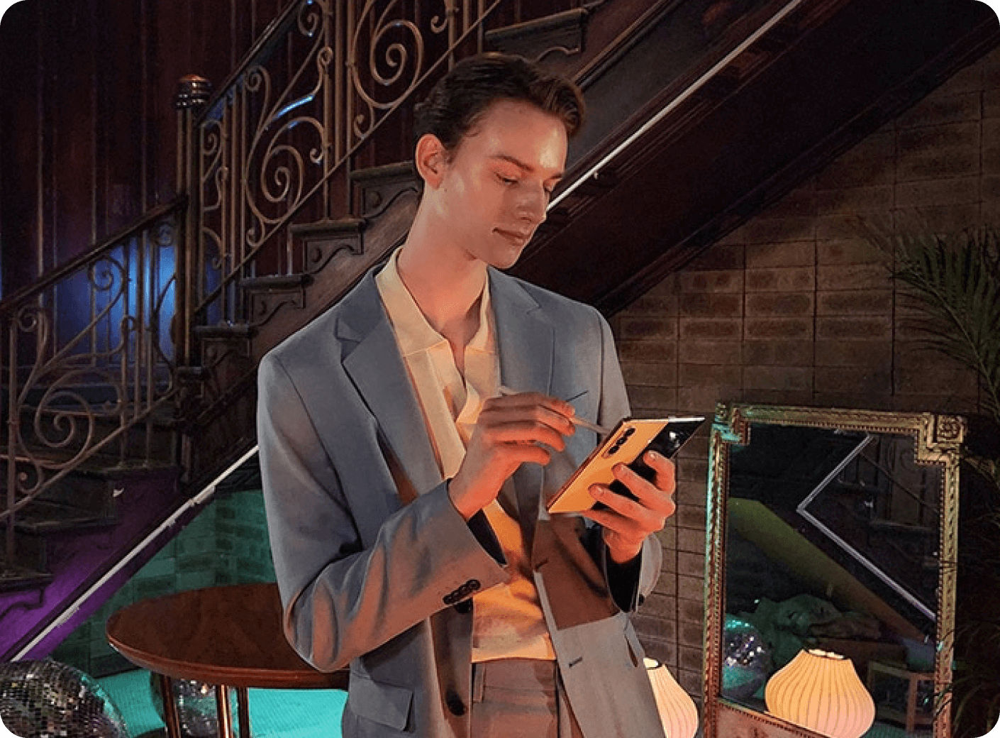 Для отличных портретов никогда не поздно. В задних камерах Galaxy Z Fold4 используется инновационное аппаратное и программное обеспечение, которые вместе еще больше освещают фотографии в условиях недостаточного света. От заката до рассвета и дальше — мощный процессор профессионально усиливает цвет и придает четкость каждому кадру.