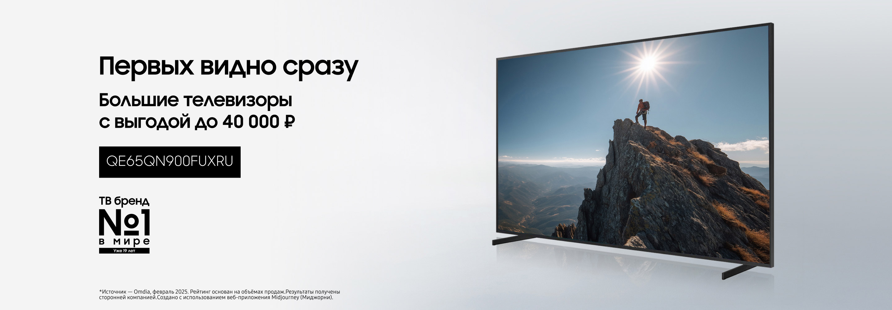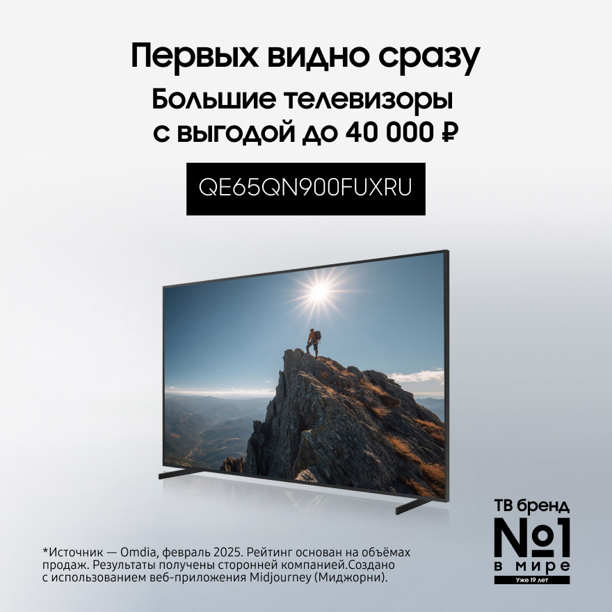 Телевизор Samsung 65" Neo QLED QN900F 8K Mini LED, Процессор NQ8 AI Gen2, Vision AI Smart ТВ (2025) QE65QN900FUXRU черный