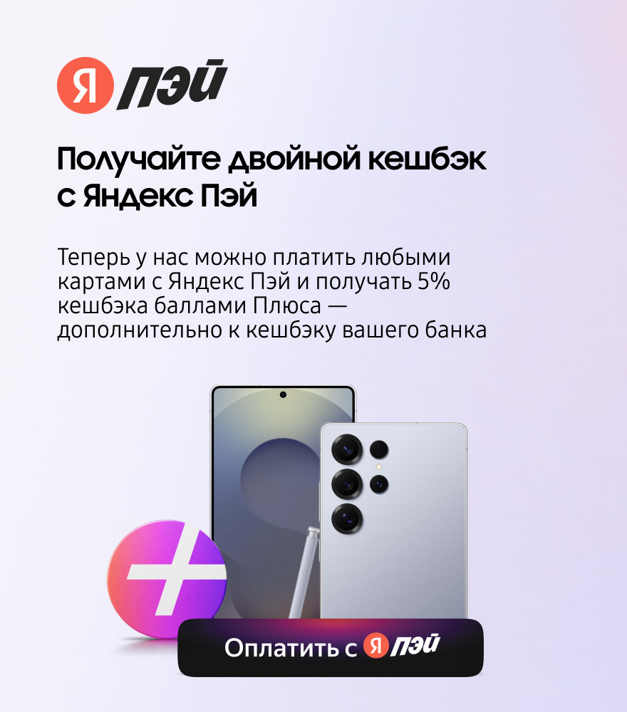 Откройте карту Пэй и получайте ещё больше баллов Плюса — ими можно оплачивать покупки в сервисах Яндекса.