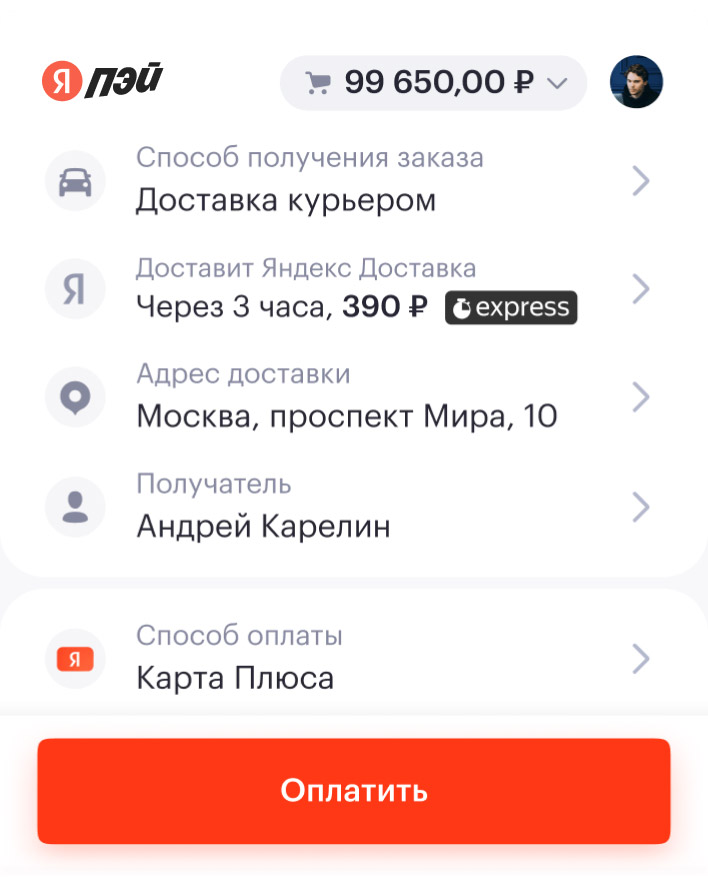 Yandex Pay — информационный сервис, позволяющий сохранять и использовать данные банковских карт. Подробнее в условиях использования сервиса.
